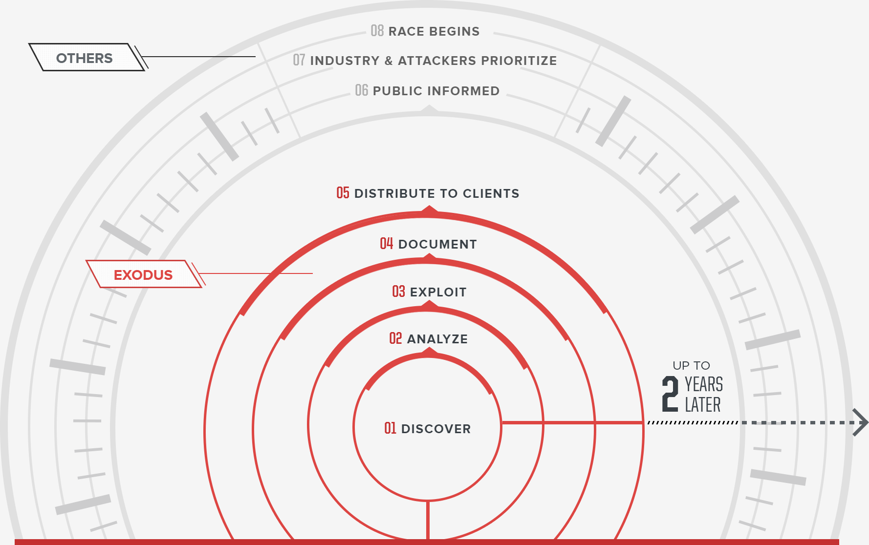 Our exploitation techniques exceed the capabilities of today’s malicious actors which means our customers are prepared for future threats.